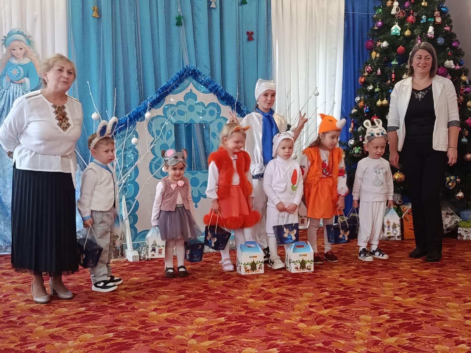 Напередодні свята Миколая малята групи раннього віку «Незабудка» вирушили у гості до веселого Сніговичка. Діти розповідали йому вірші, заспівали пісеньку про Святого Миколая та потанцювали цікаві таночки з шишками та горішками. Протягом свята малюки дарували глядачам незабутні враження та теплоту своїх усмішок. А Сніговичок передав їм солодкі гостинці від самого Миколая!